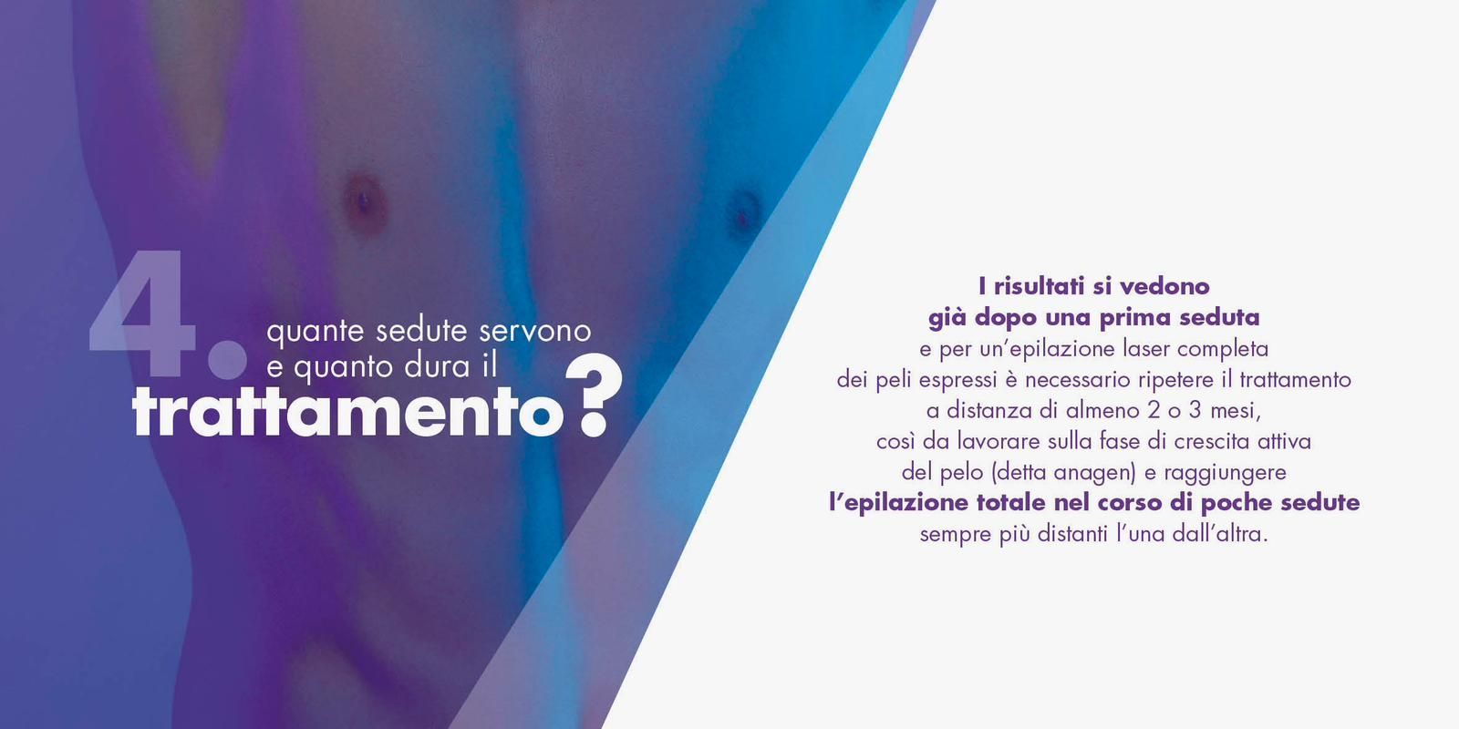 Ripetendo questo processo durante le sessioni programmate che variano dai due ai tre mesi di distanza tra una e l’altra è possibile ottenere risultati di epilazione a lungo termine.